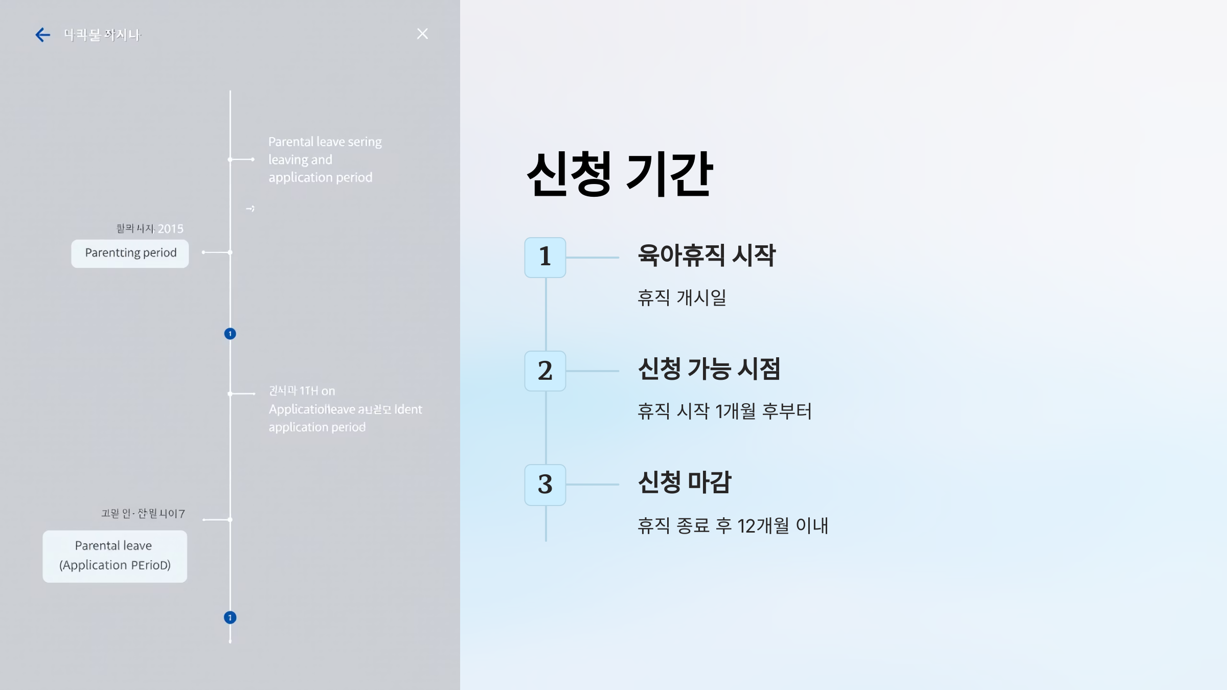 - 육아휴직 시작일 이후 1개월부터 육아휴직 종료일 이후 12개월 이내: 육아휴직 시작 후 바로 신청할 수 있는 것은 아니며, 최소 한 달 후부터 신청 가능합니다. 또한 육아휴직이 끝난 후에도 12개월 이내에는 신청할 수 있으니, 혹시라도 잊어버렸더라도 기간 내에 신청하면 됩니다.