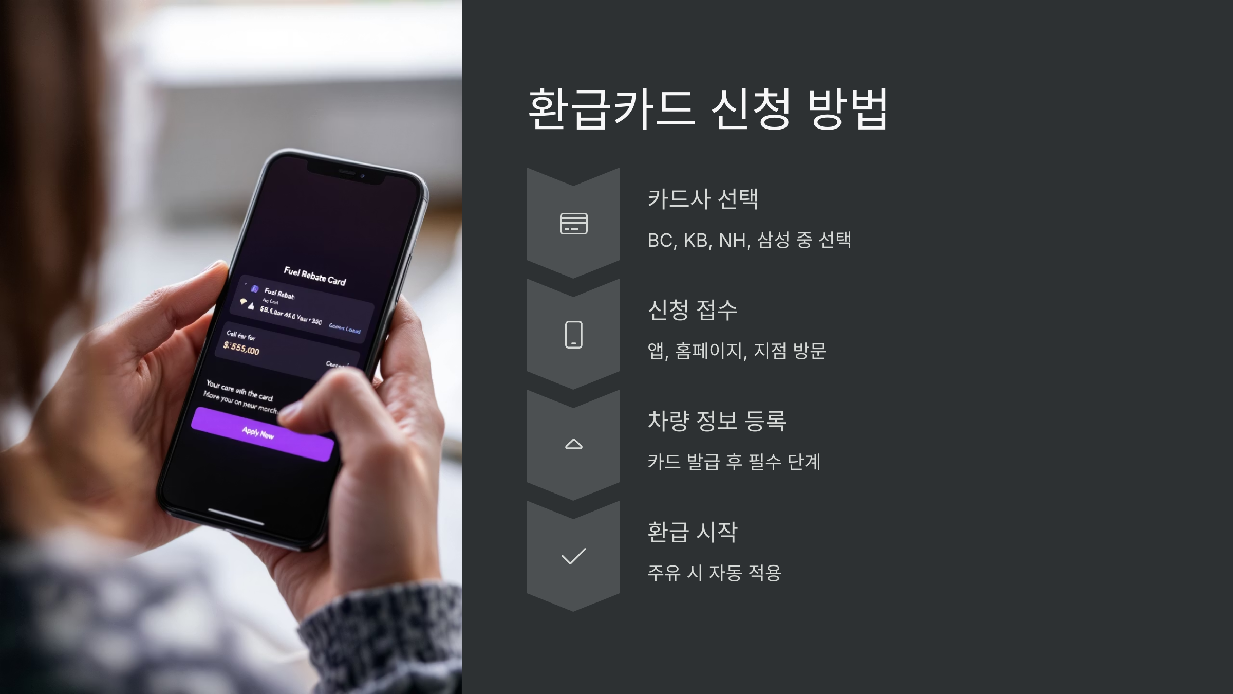 신청은 각 카드사의 홈페이지, 모바일 앱, 전화 고객센터에서 가능하고, 일부 은행 영업점에서도 직접 방문 신청할 수 있어요. 모바일 앱으로 신청할 경우 보통 3일 이내에 발급되며, 실물 카드를 수령해야 주유소에서 사용할 수 있어요.