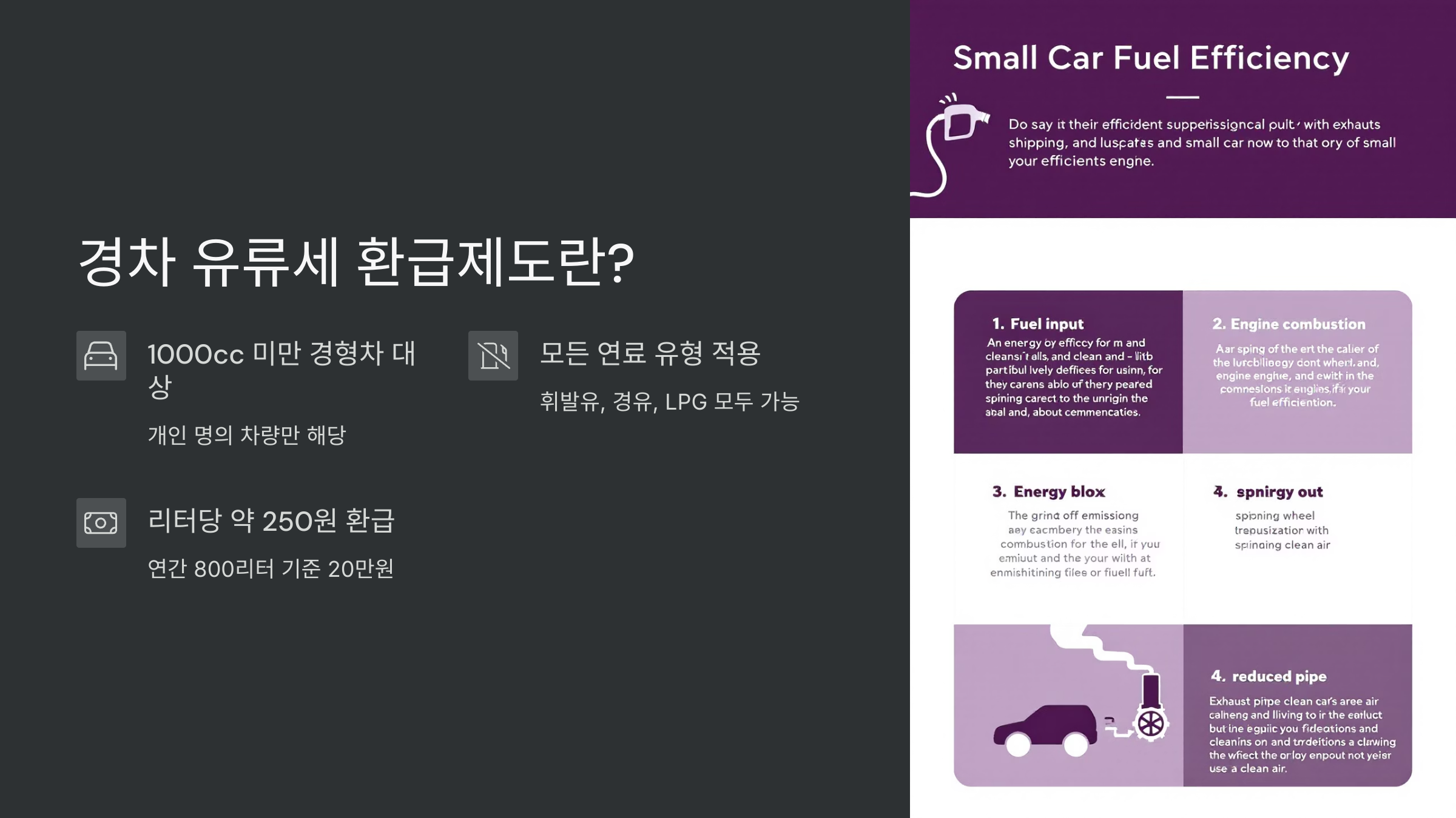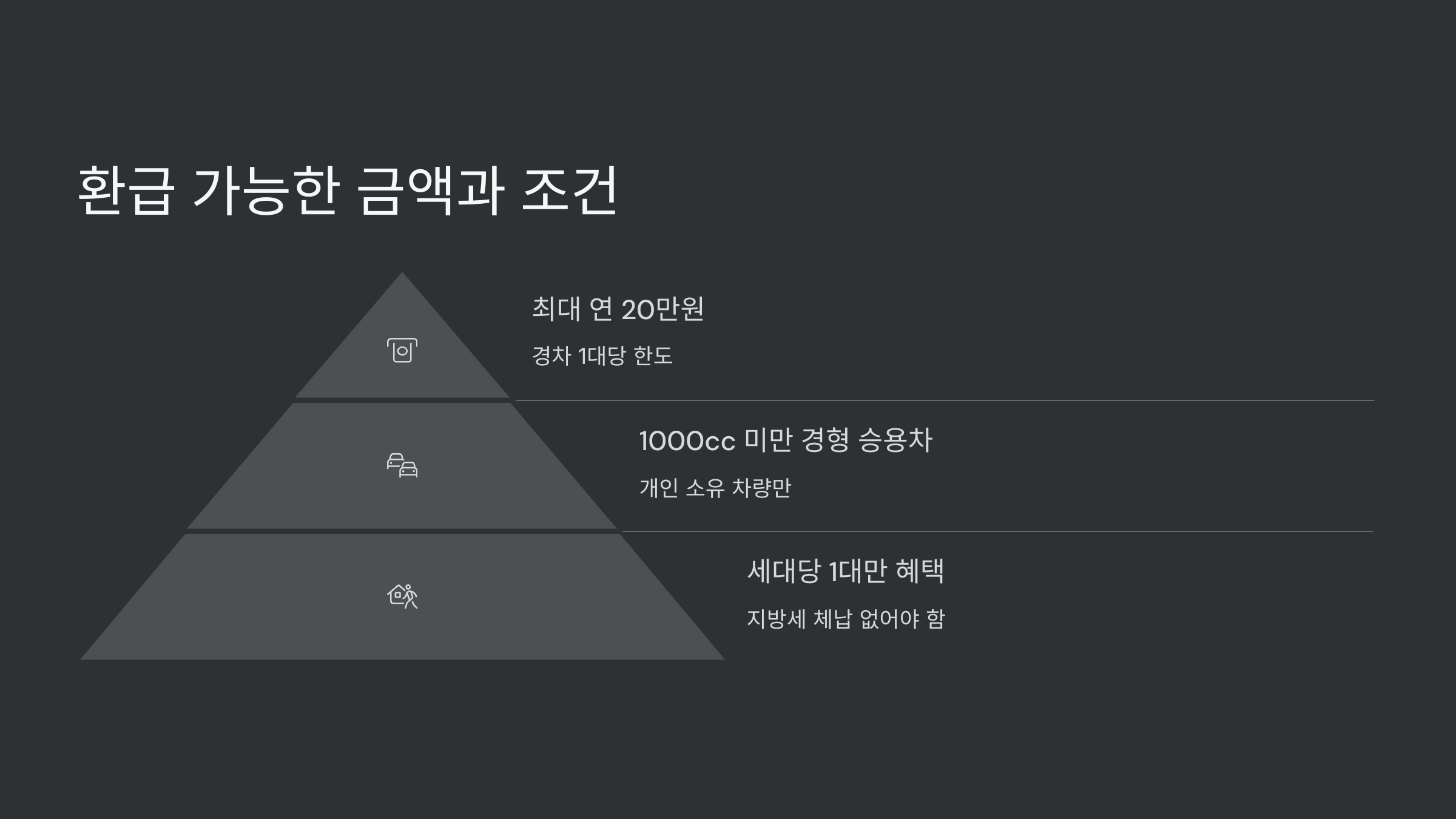 이 제도는 배기량 1000cc 미만의 경형차를 보유한 사람에게 연료 구입 시 포함된 유류세 일부를 돌려주는 정부 제도예요. 단, 차량은 반드시 개인 명의여야 하고, 렌터카나 법인 차량은 제외돼요.