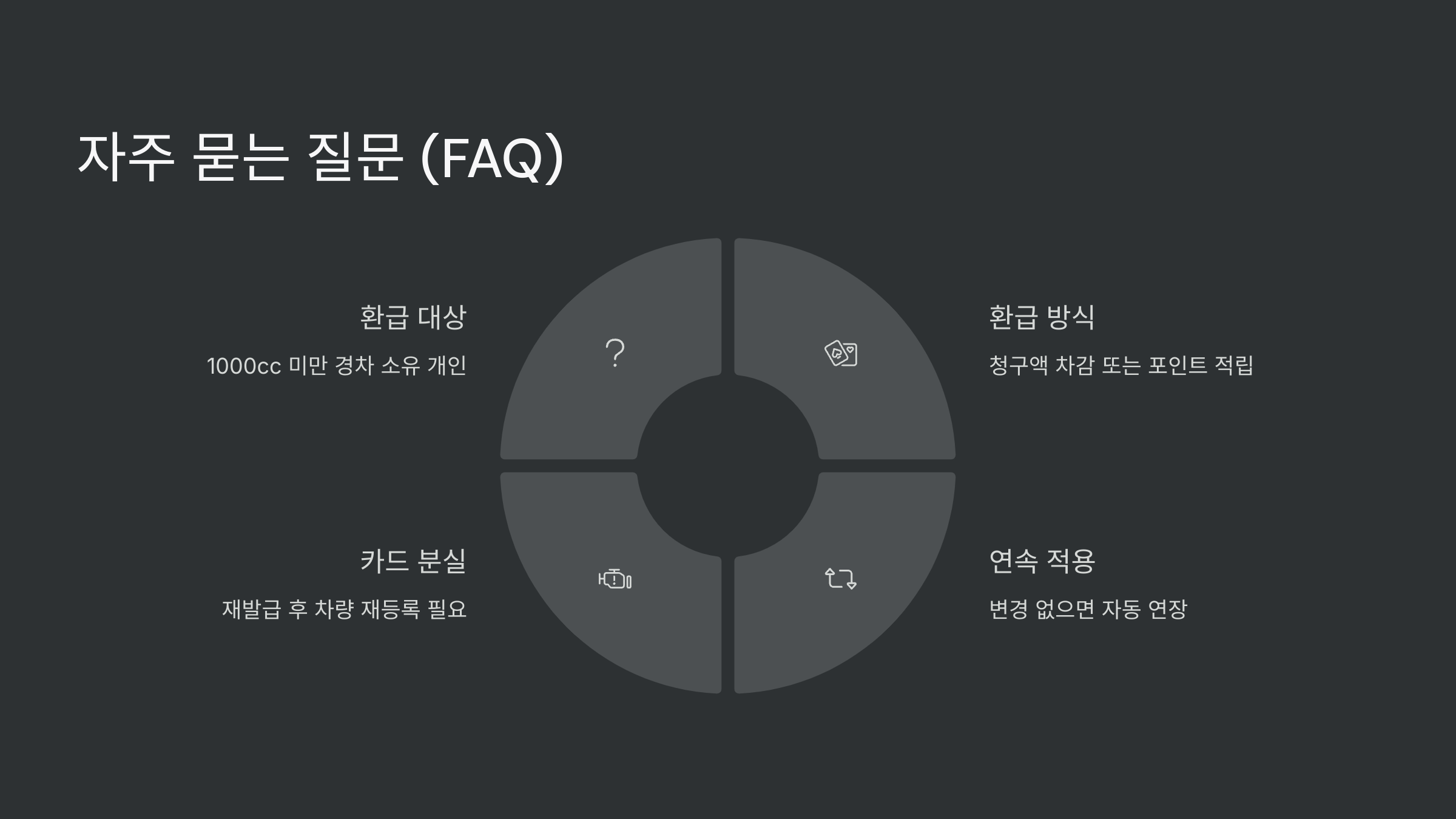 A6. 차량이나 카드 변경이 없으면 자동으로 연속 적용돼요. 단, 카드 해지나 등록 변경 시 재신청해야 해요.