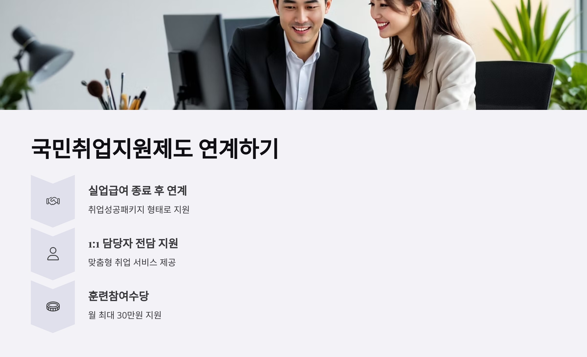 2유형은 소득 제한이 까다롭지 않기 때문에 **실업급여 종료 후에도 대부분 신청 가능**해요. 특히 직업훈련, 취업알선, 이력서·면접 컨설팅 등 맞춤형 서비스를 받을 수 있고, 훈련에 참여하면 **월 최대 30만 원 훈련참여수당**도 받을 수 있답니다