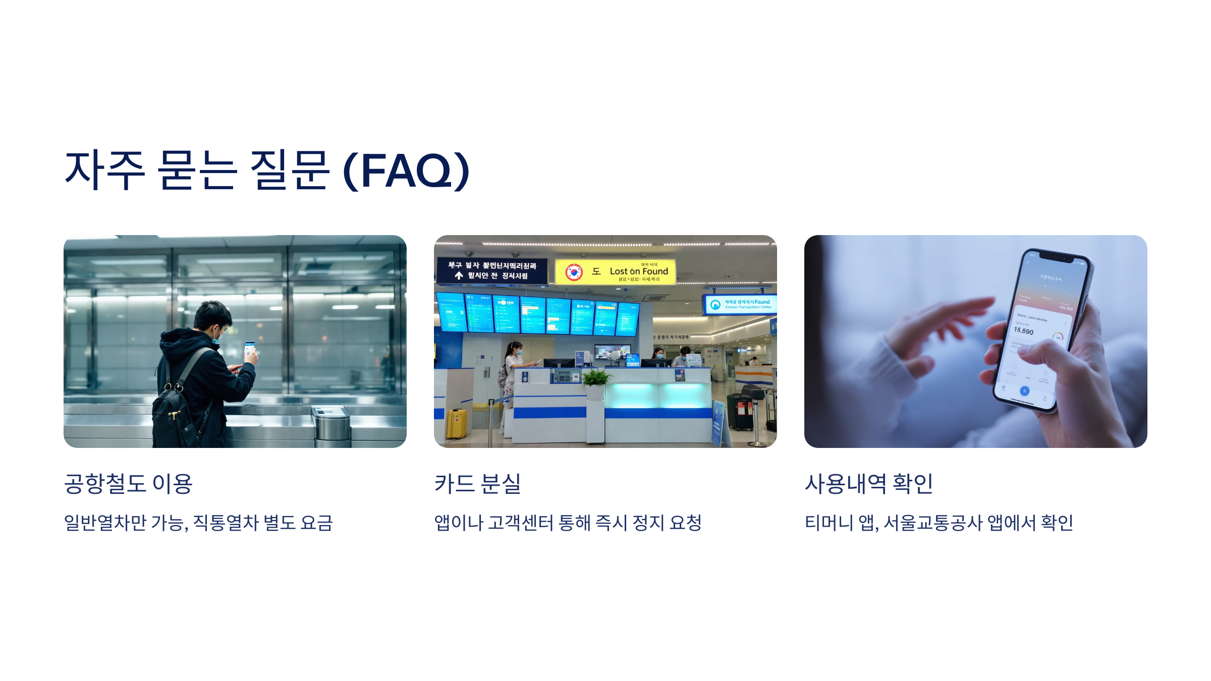 A8. 티머니 앱 또는 서울교통공사 앱에서 간편하게 확인할 수 있어요.