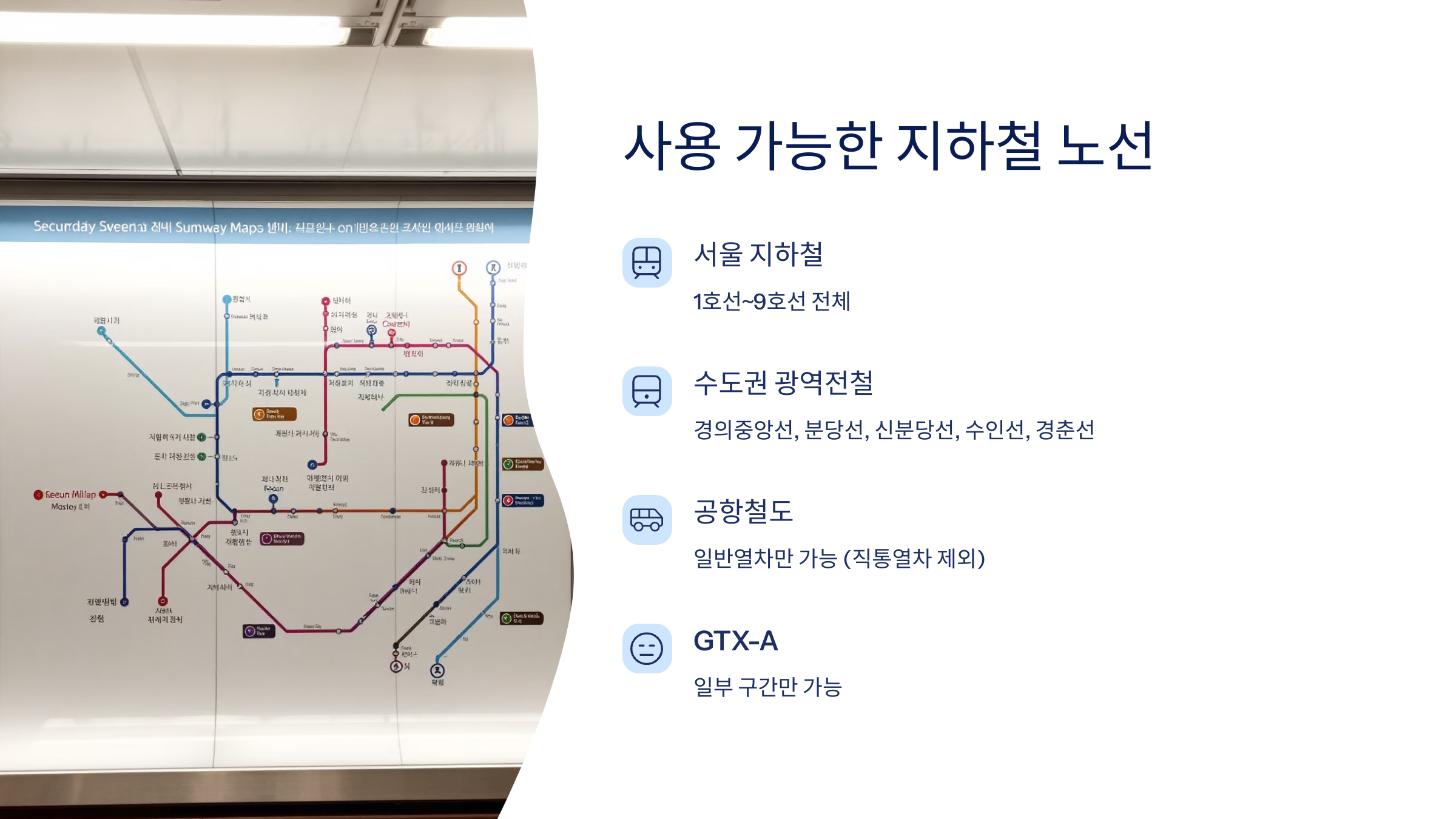 GTX-A노선 일부 구간에서도 사용할 수 있는데요, 전 구간 적용은 아니기 때문에 사전에 확인하는 게 좋아요.