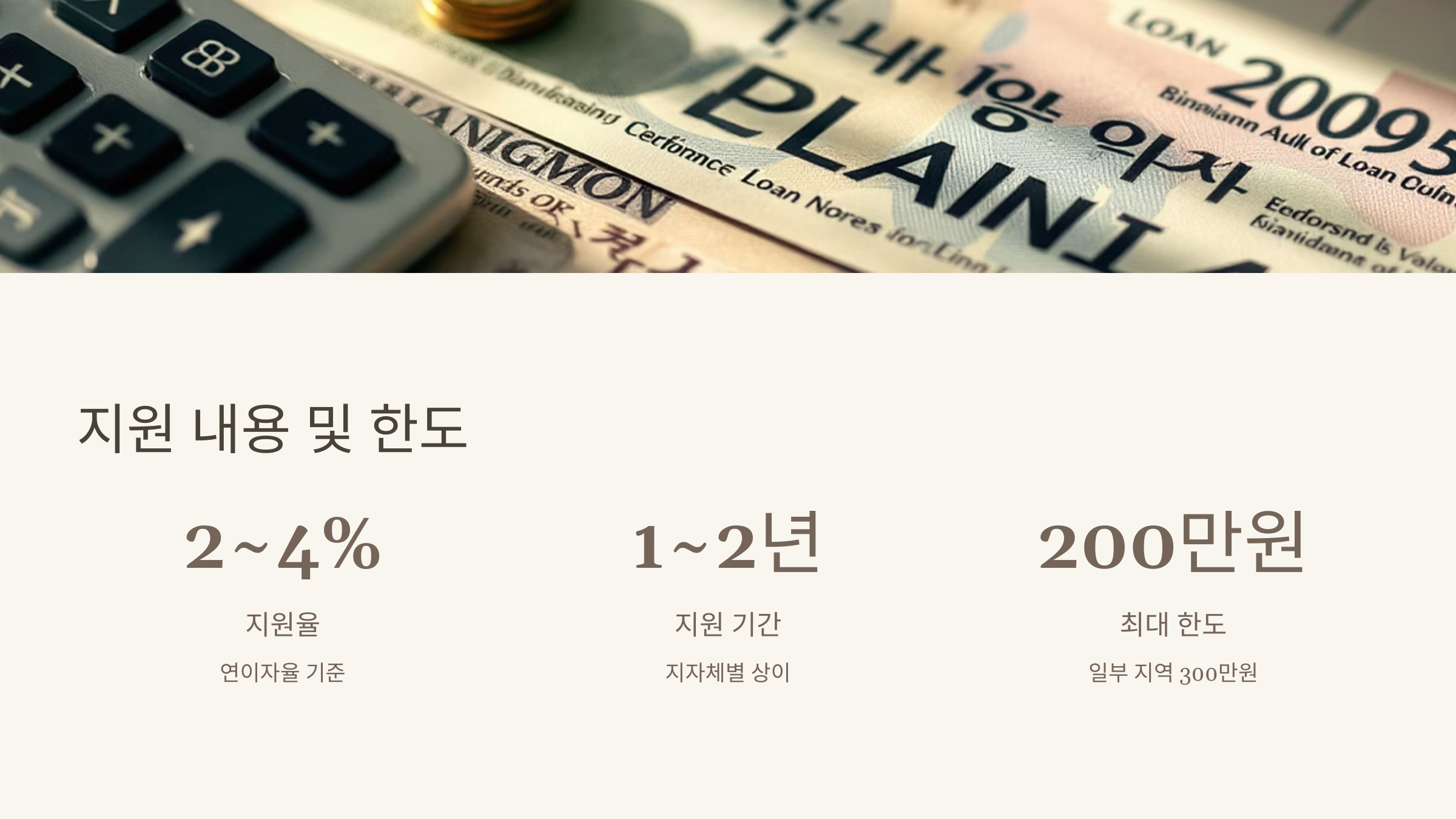 주의할 점은 ‘대출금 전체 지원’이 아니라 ‘이자 일부에 대한 정액 지원’이라는 거예요.