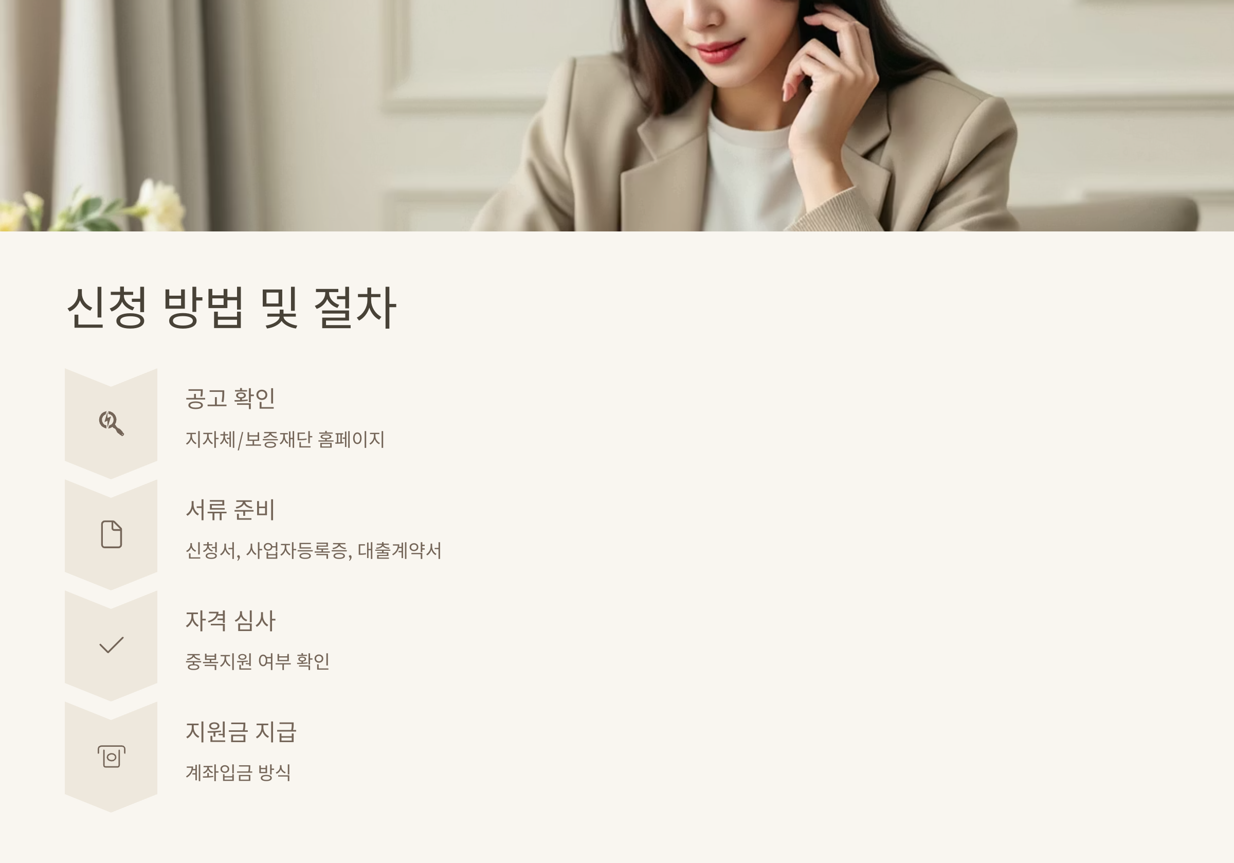 신청은 해당 지자체의 일자리경제과, 소상공인지원부서, 지역신용보증재단 홈페이지 등을 통해 연 1~2회 모집 공고가 나요.