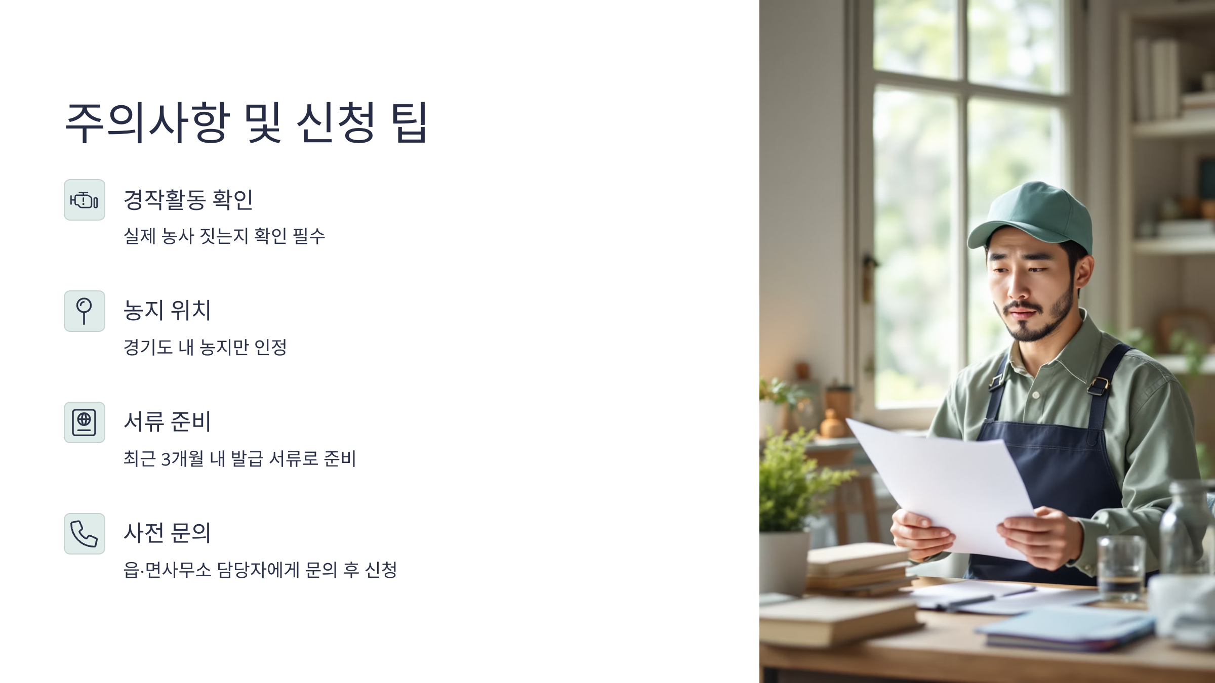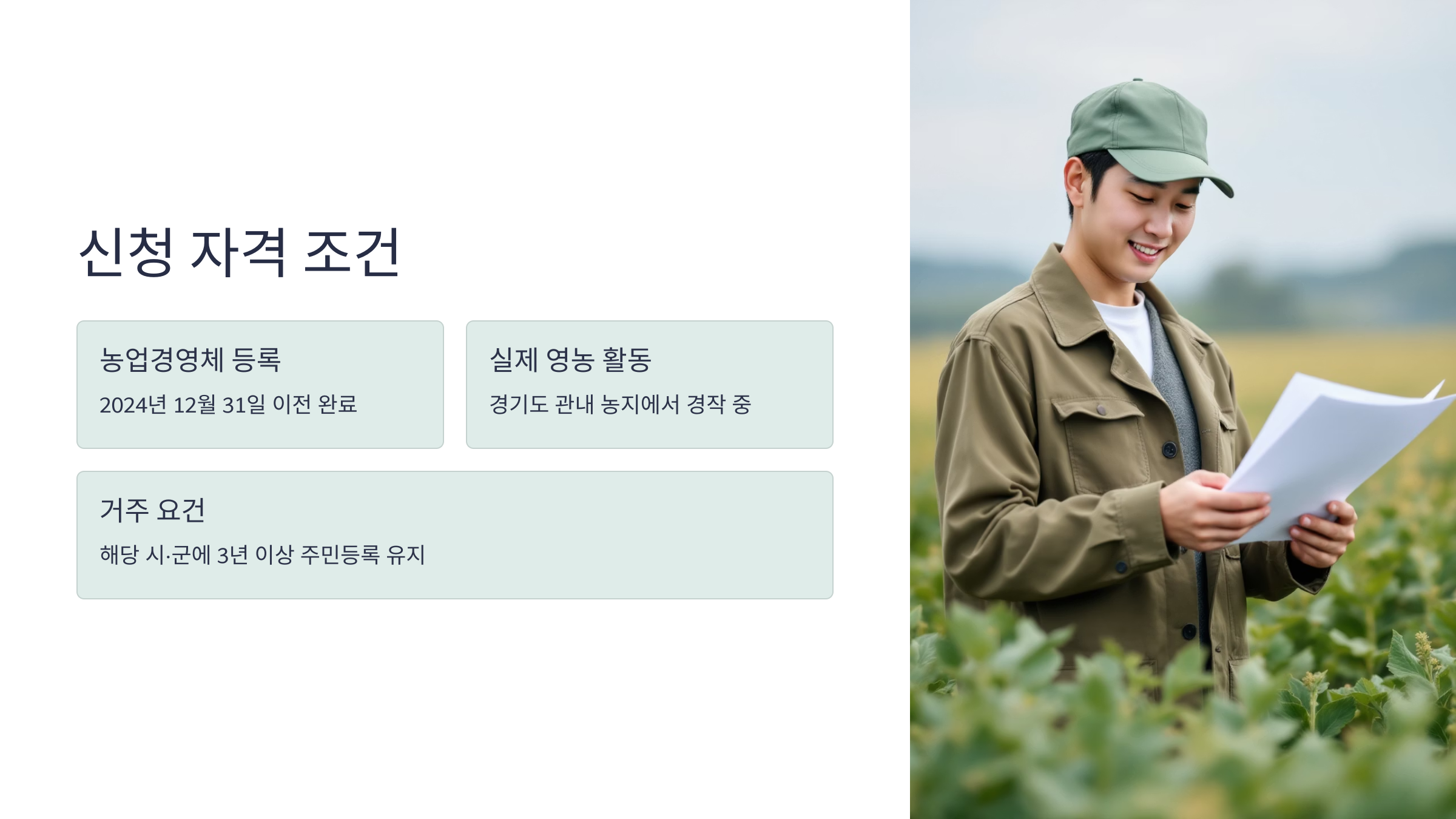 2025년 기준, 경기도 농민기본소득을 신청하려면 3가지 핵심 조건을 모두 충족해야 해요.
