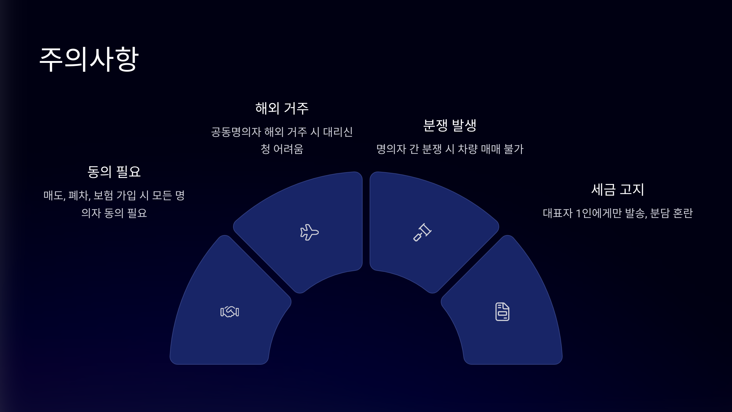 - 명의자 간 분쟁 발생 시 차량 매매 불가