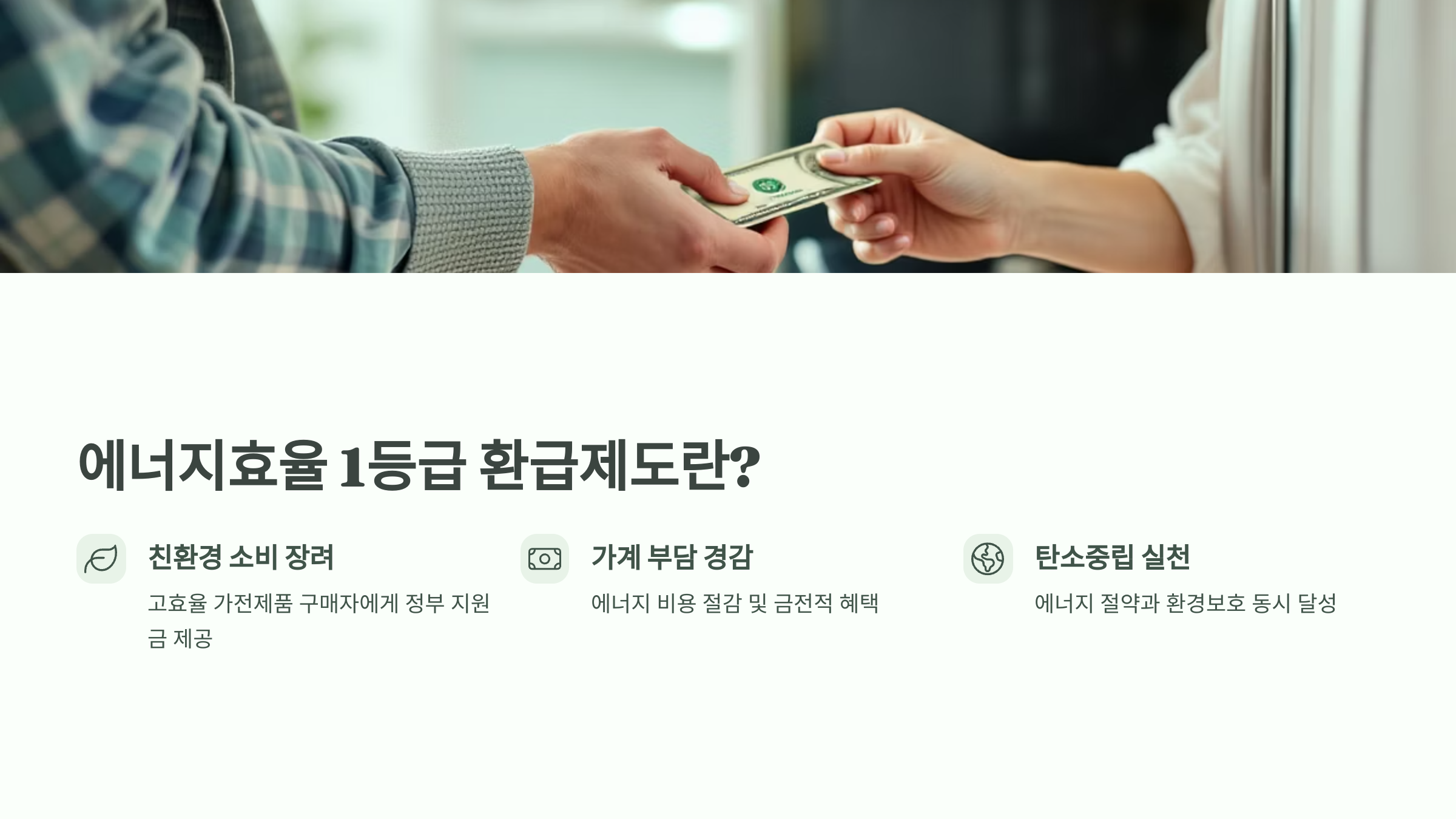 에너지효율 1등급 환급제도는 고효율 가전제품을 구매한 소비자에게 정부가 일부 금액을 돌려주는 정책입니다. 친환경 소비를 촉진하고, 가계 에너지 비용 절감을 돕는 제도라고 할 수 있어요.