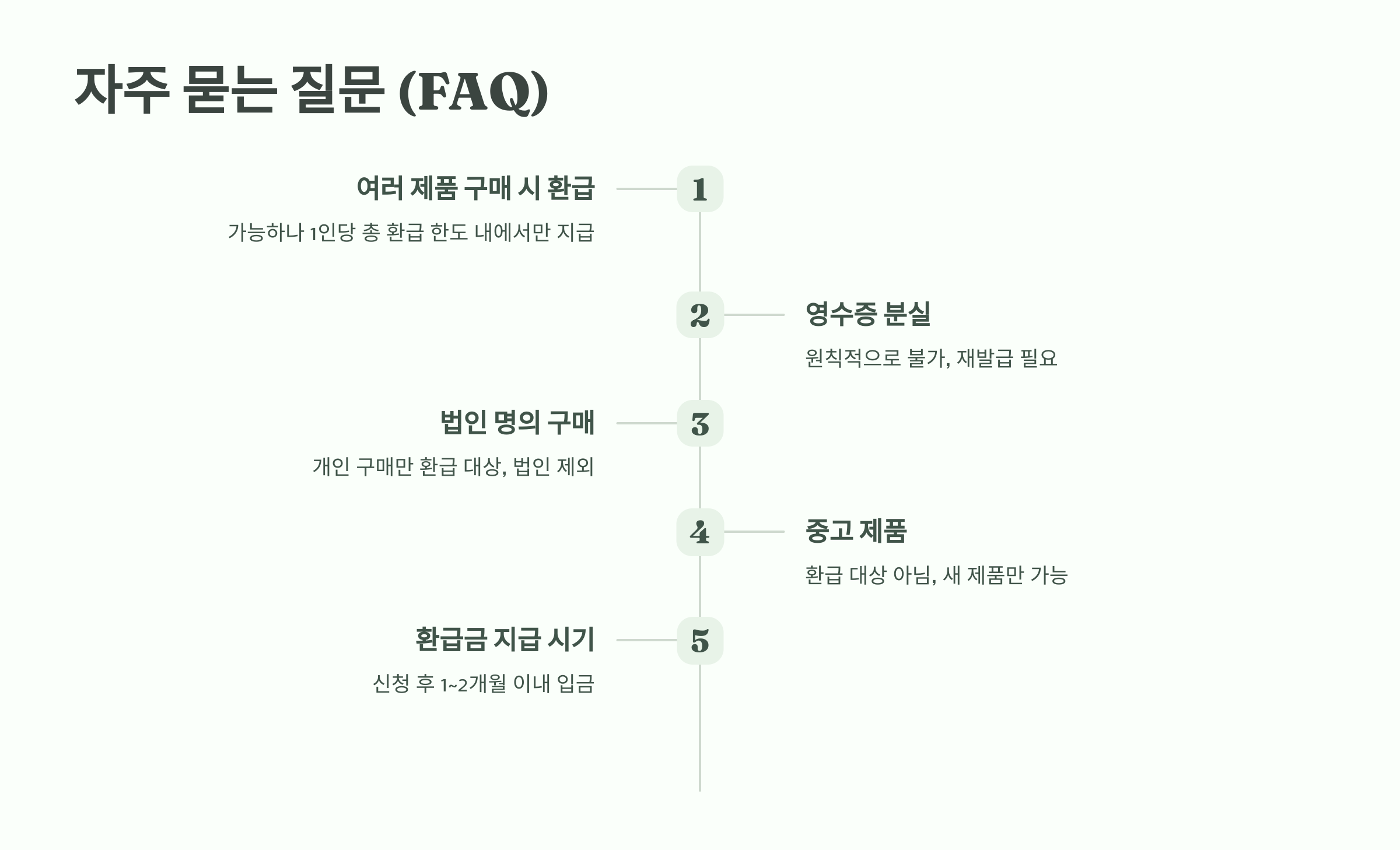 또한, 개인별 환급 한도도 정해져 있어요. 1인당 총 환급 상한액은 50만 원 수준입니다. 다양한 제품을 구매하더라도 이 한도 내에서만 환급이 가능하니 주의해야 해요.