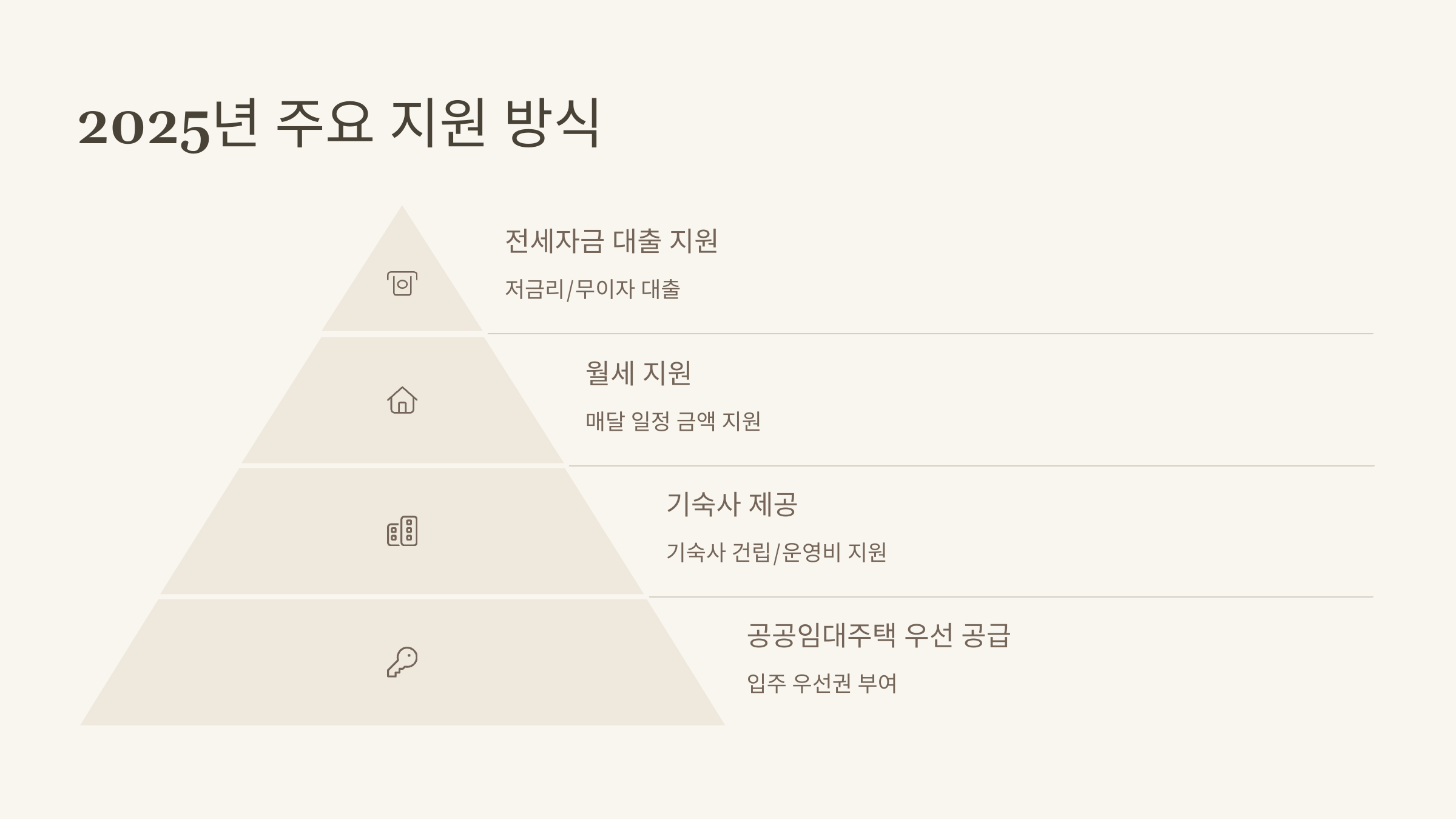 | 월세 지원 | 매달 일정 금액 지원 | 주거비 부담 |