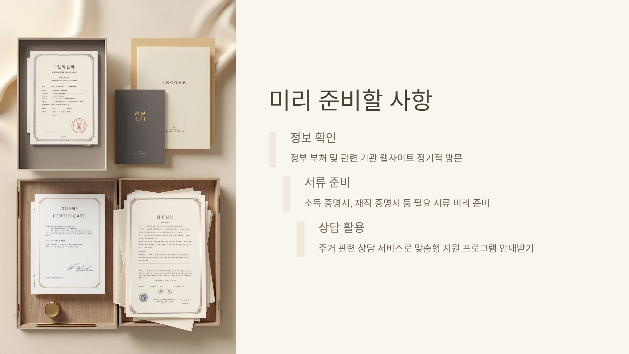 - 필요 서류 미리 준비: 소득 증명서, 재직 증명서 등 필요한 서류를 미리 준비해두면 신청 과정을スムーズ하게 진행할 수 있습니다.
