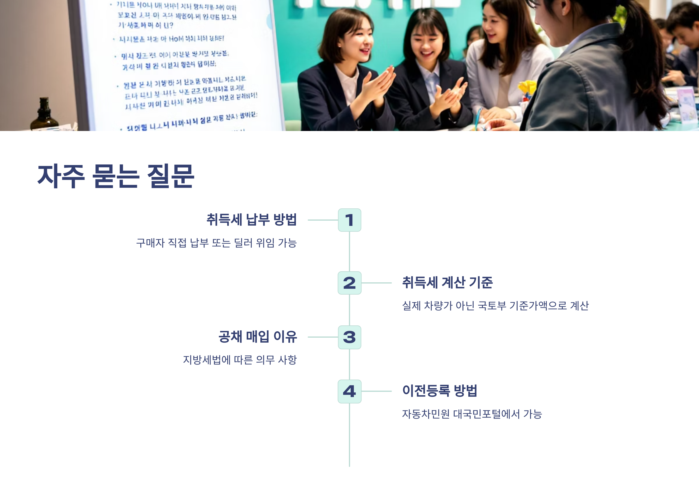 3. **경차/저가 차량 선택** 경차는 취득세 면제, 등록비도 낮아 전체 비용이 크게 줄어요.