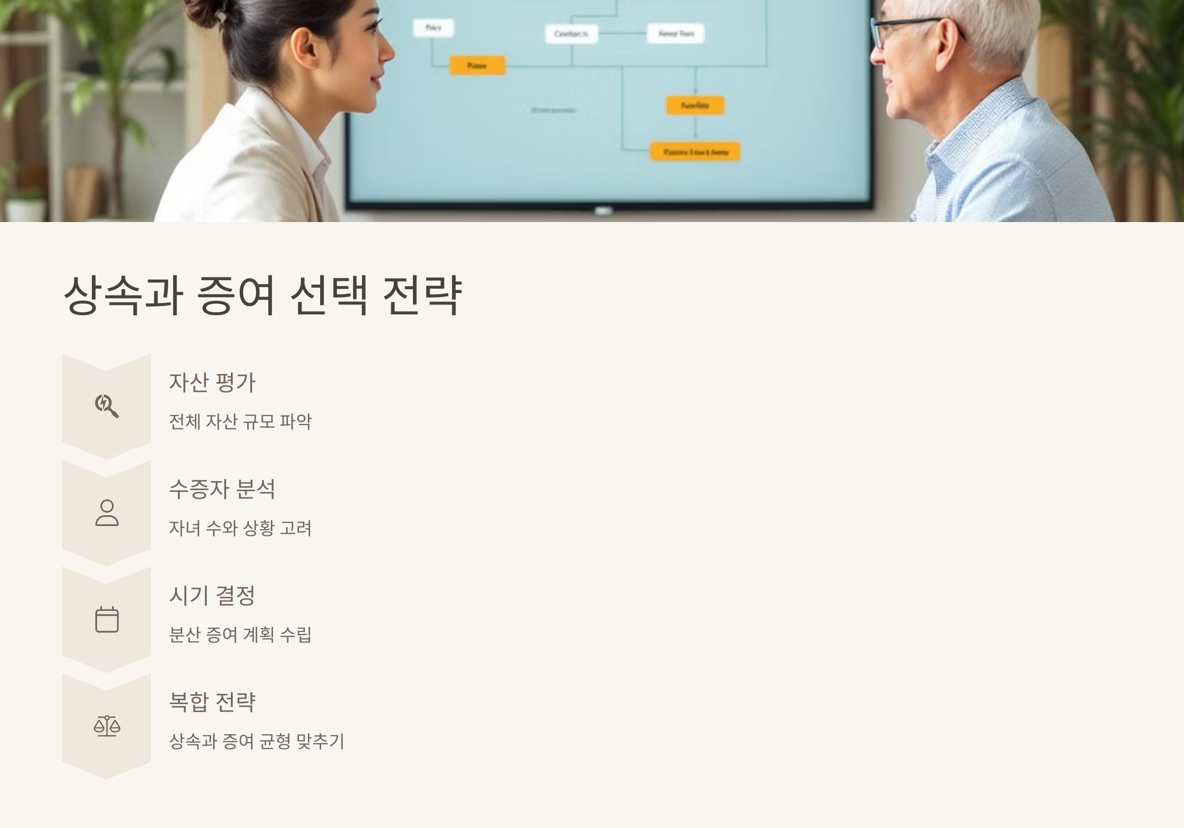 자산이 적고, 수증자가 많다면 증여가 유리해요. 반면 고액 자산이라면 상속을 고려하되, 사전 증여를 일부 섞는 방식이 좋을 수 있어요. 복합전략이 핵심이에요.