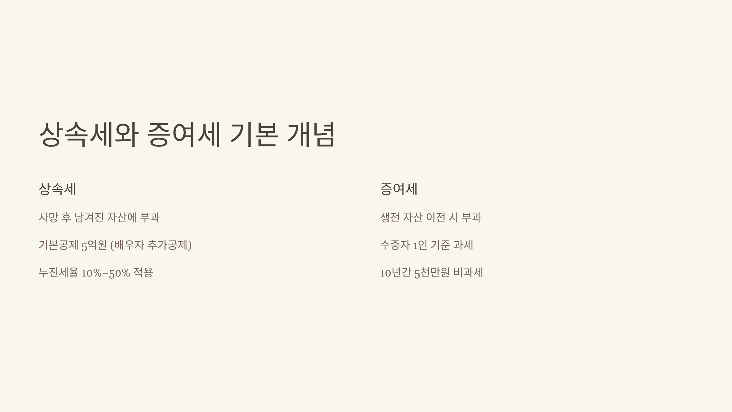 상속세와 증여세는 모두 ‘무상으로 재산을 받았을 때’ 부과되는 세금이에요. 그런데 많은 사람들이 ‘어차피 비슷한 거 아닌가?’라고 생각해요. 정말 그럴까요?
