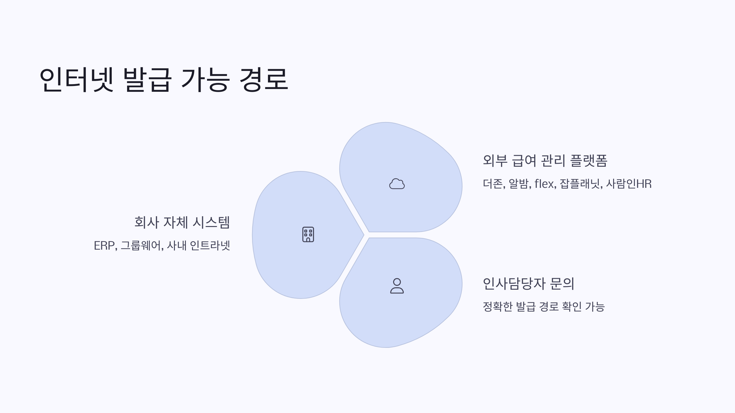 급여명세서를 인터넷으로 발급받을 수 있는 곳은 보통 다음 세 가지 유형으로 나뉩니다: